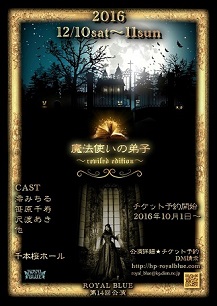 2016年 第14回公演 詳細が決まりました。 第14回公演「魔法使いの弟子 ~revised edishon~」 2016年12月10日(土)~11日(日) 千本桜ホール チケット予約開始 2016年 10月1日~ 詳細は「公演情報」でご確認くださいませ。